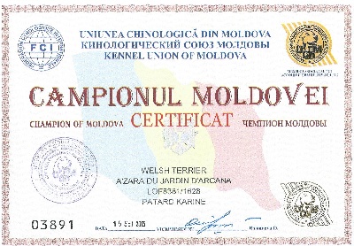 Titre de Champion de moldavie de 14 CH A'zara du jardin d'Arcana